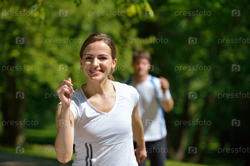 Молодая пара на утренней пробежке