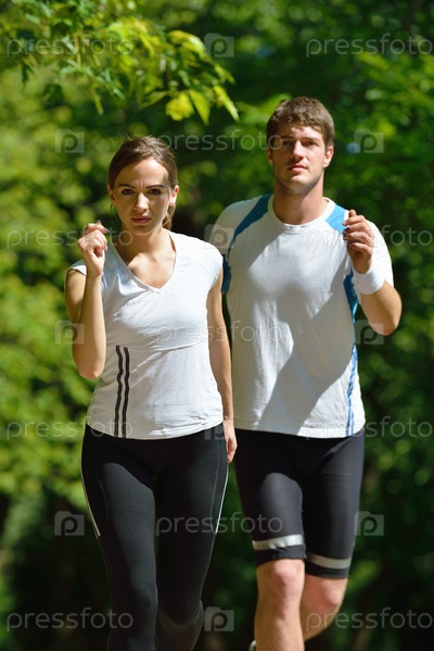 Молодая пара на утренней пробежке