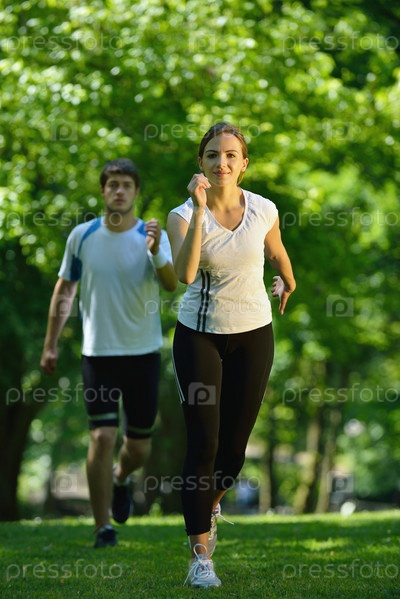 Молодая пара на утренней пробежке