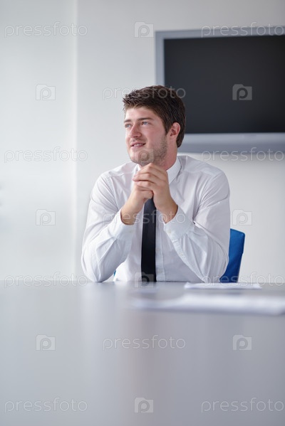 Счастливый молодой бизнесмен в офисе
