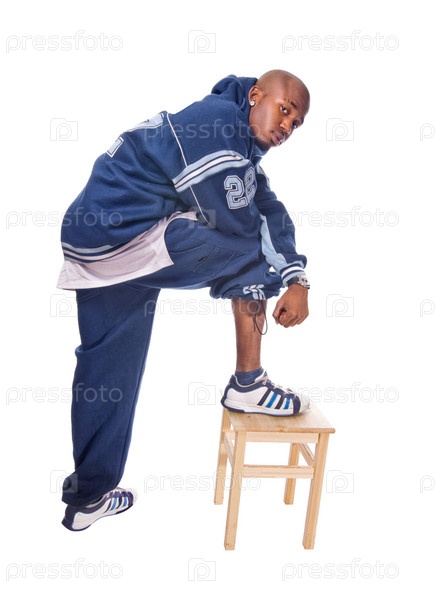 Стильный молодой танцор хип-хопа на белом фоне