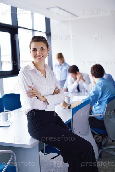 Бизнес-леди на фоне коллег в офисе