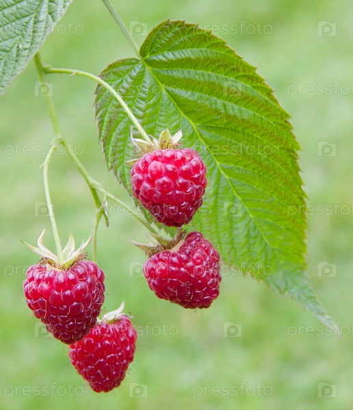 Красная малина на ветке