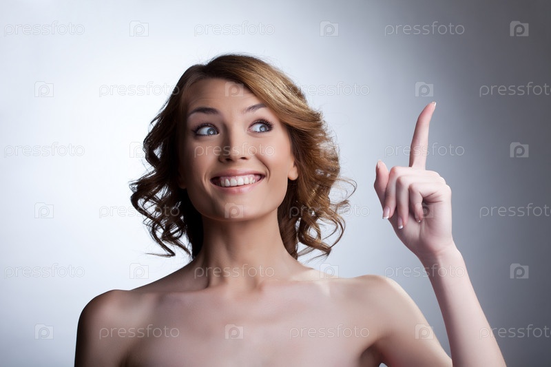 Хорошенькая молодая женщина с поднятым вверх пальцем