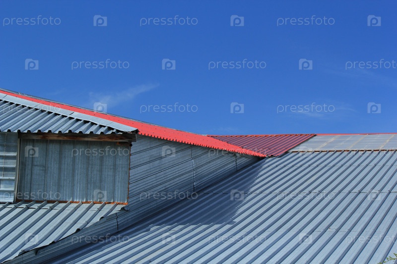 Фрагмент металлической крыши на фоне синего неба