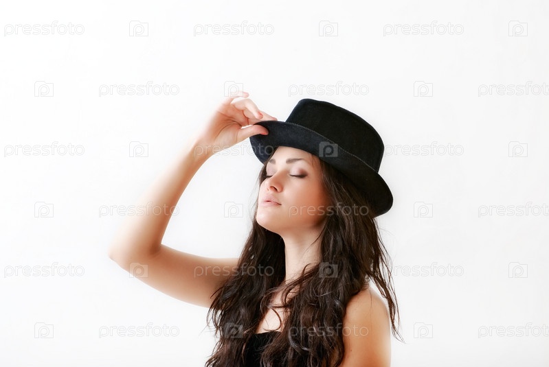 Студийный портрет привлекательной девушки в шляпе