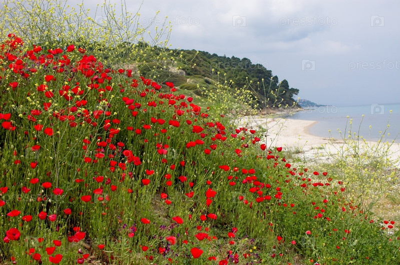 Маки и морской пейзаж