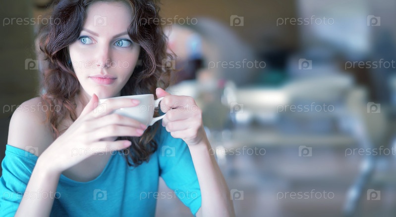 Красивая женщина пьет кофе