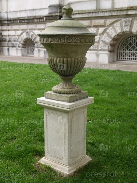 Древне-греческая урна в парке (выборочный фокус с размытым фоном)