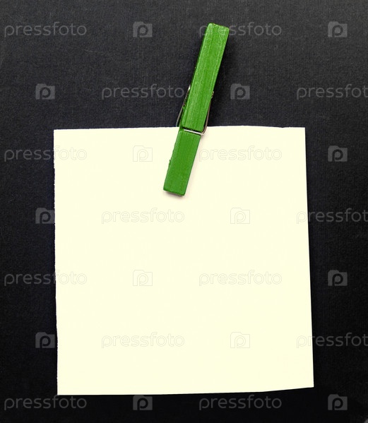 Пустой блокнот на черном фоне с зеленой прищепкой