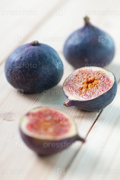 Целый и разрезанный инжир на деревянных досках