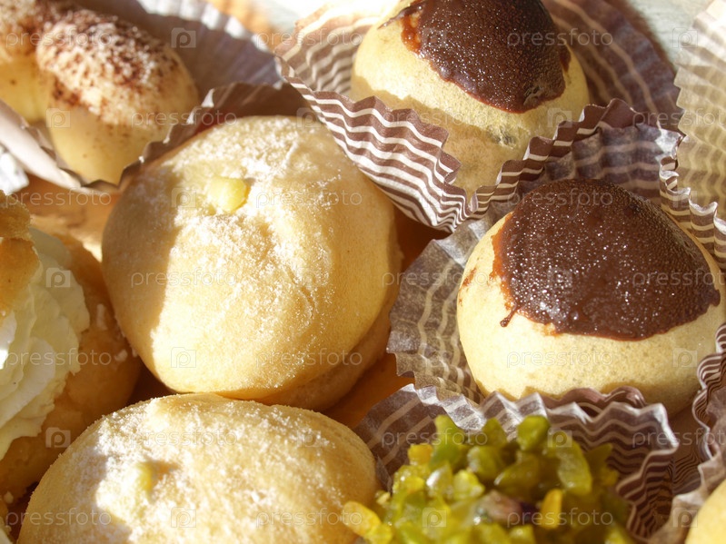Различные пирожные с шоколадом, сливками, фруктами