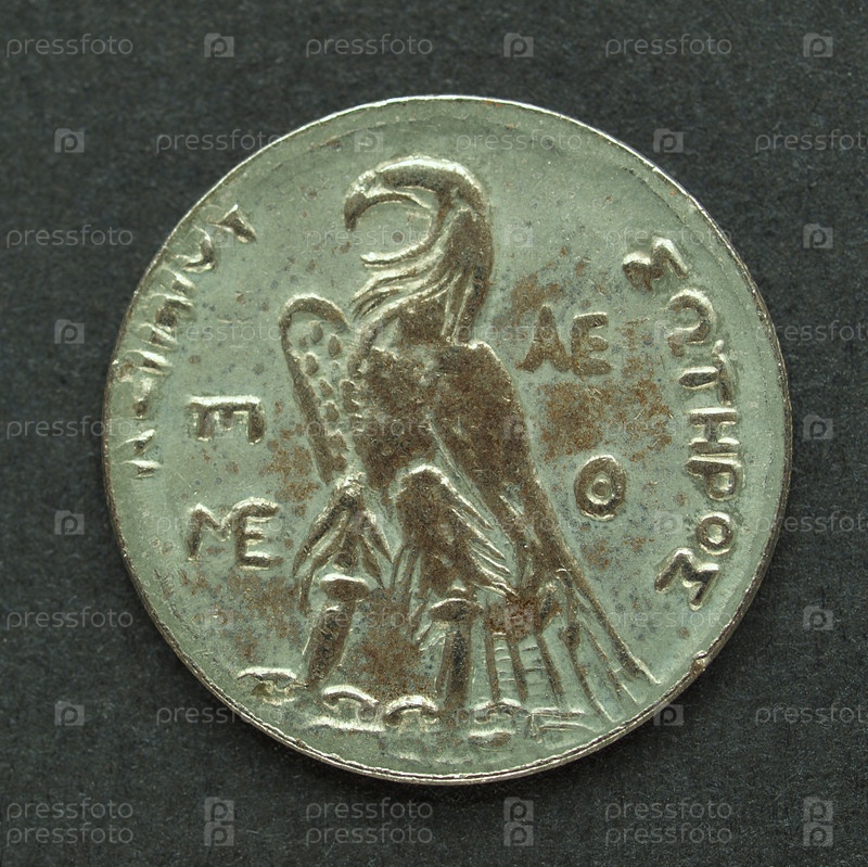Древняя греческая монета на черном фоне