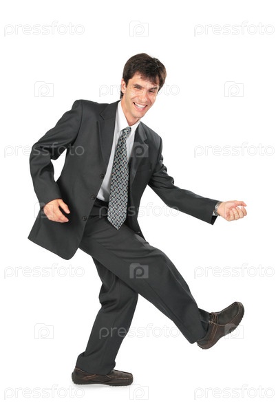 Портрет танцующего бизнесмена на белом фоне