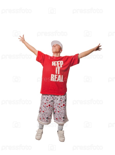Молодой танцор брейк-данса на белом фоне