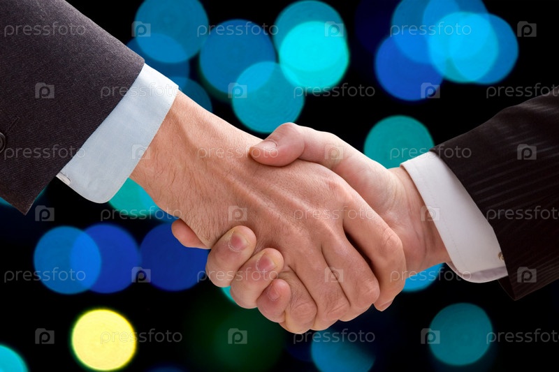 Рукопожатие на фоне цветных лампочек