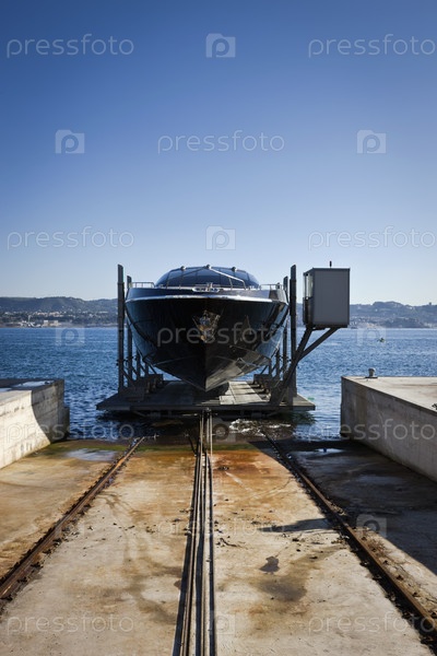 Запуск роскошной яхты Бая 100 на верфи Cantieri di Baia.Неаполь, Италия