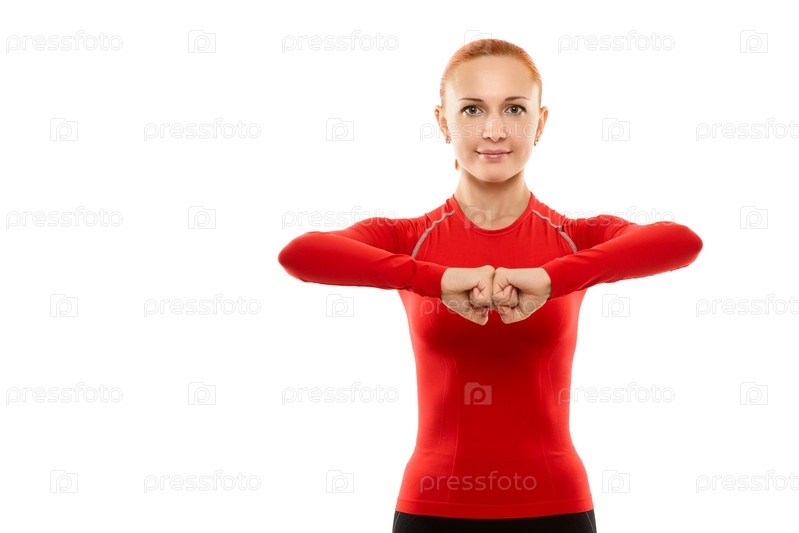 Женщина в красном на занятии фитнесом