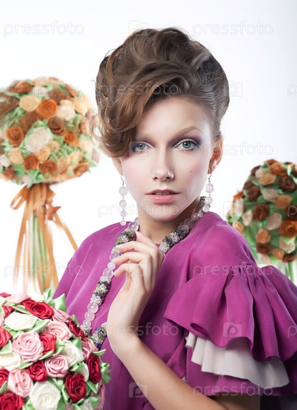 Девушка с букетами цветов
