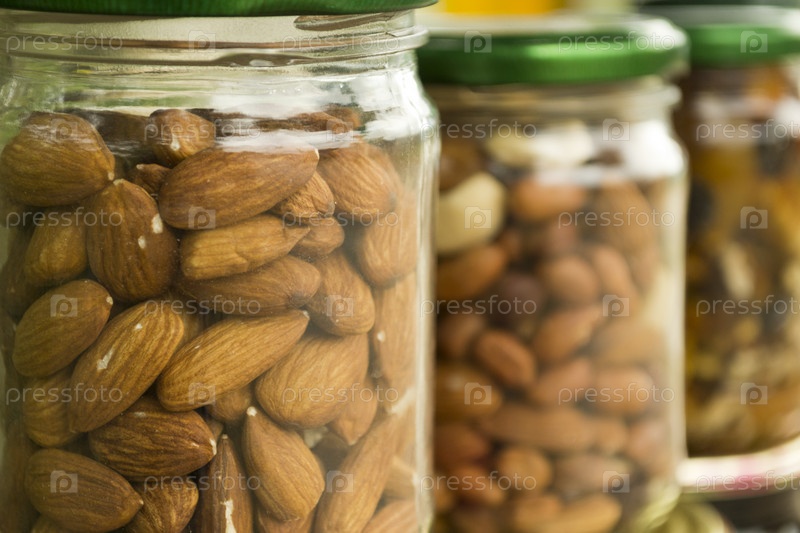 Стеклянные банки с миндалем