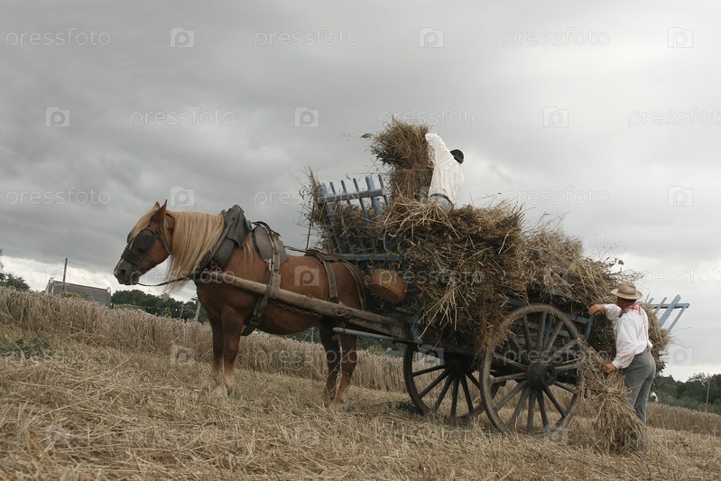 Телега запряжённая лошадью