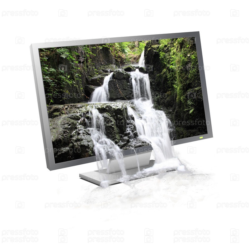 Водопад течет с экрана