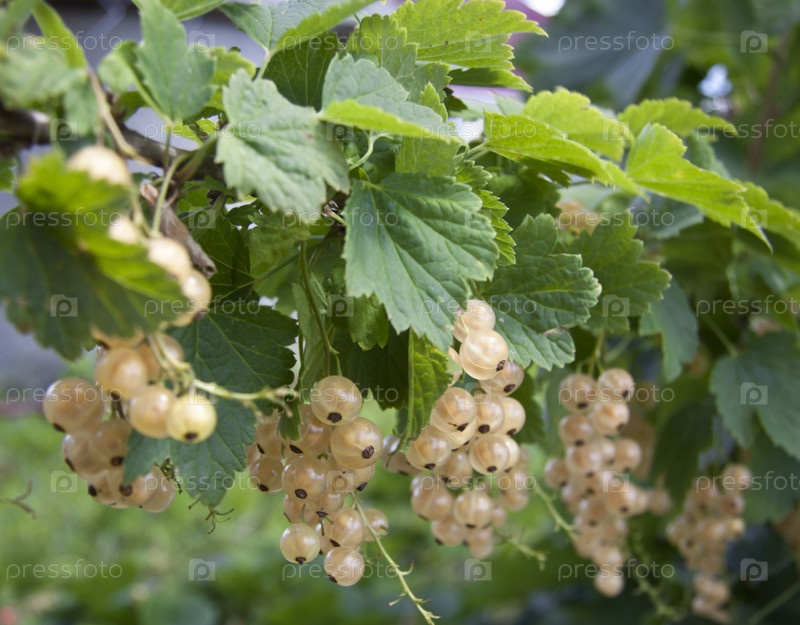 Ягоды белой смородины висят на ветке