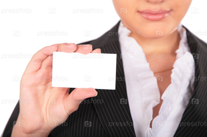 Молодая женщина с пустой визитной карточкой