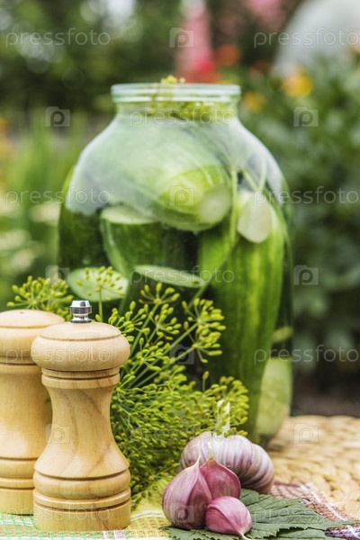 Маринованные огурцы в стеклянной банке