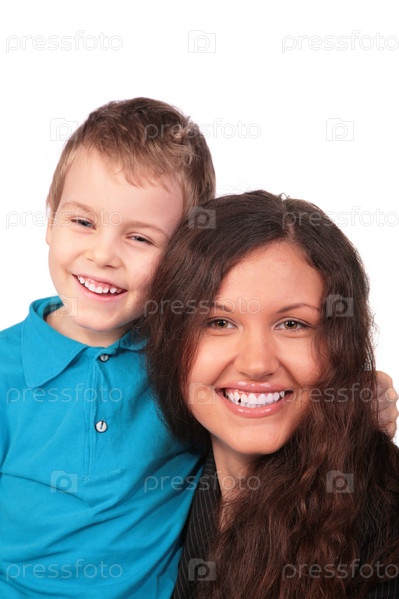 Мать и ребенок, изолированные на белом фоне
