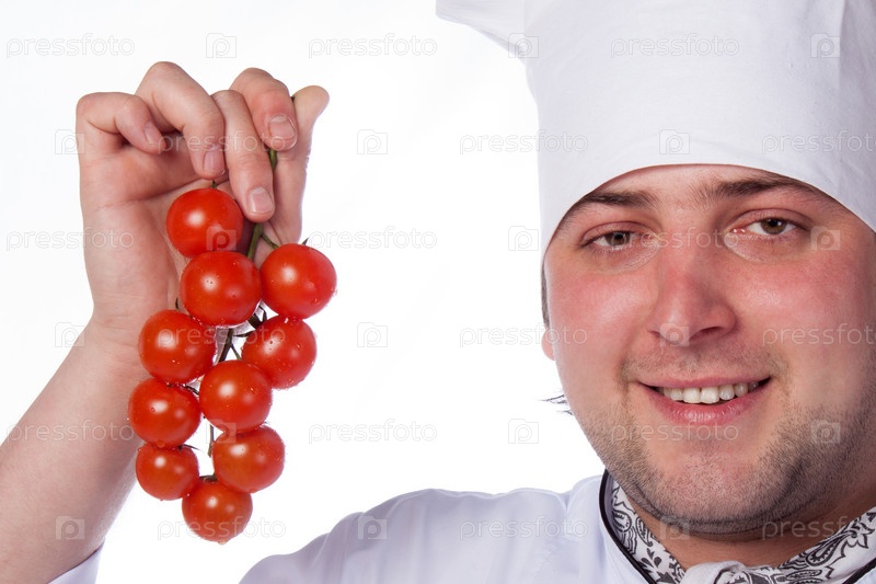Мужской шеф-повар, держащий помидоры-черри