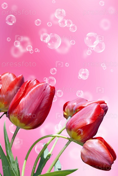 Красные тюльпаны на абстрактном фоне