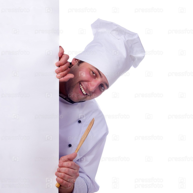 Портрет мужчины-повара с плакатом