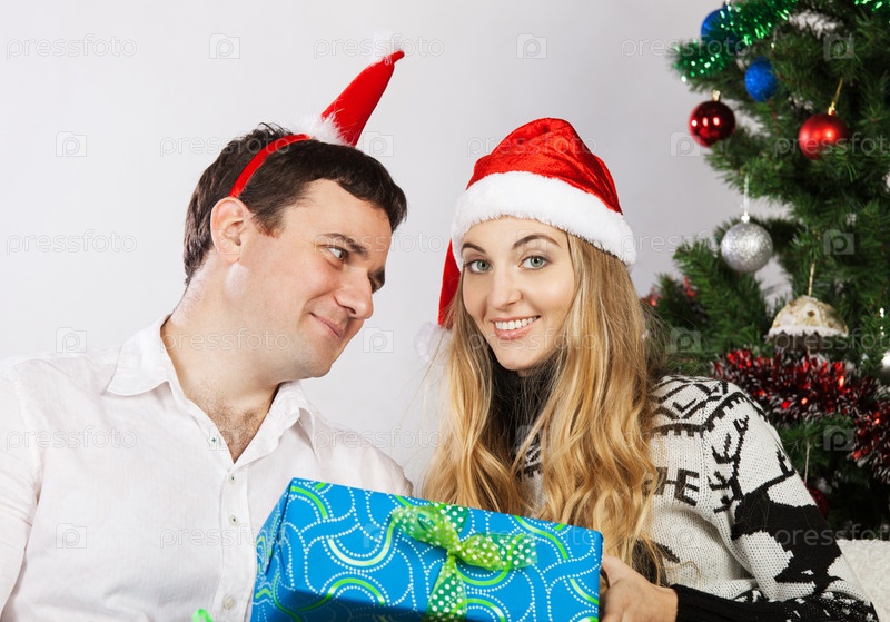 Счастливая пара возле елки