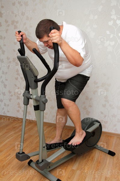 Мужчина с избыточным весом занимается на тренажере