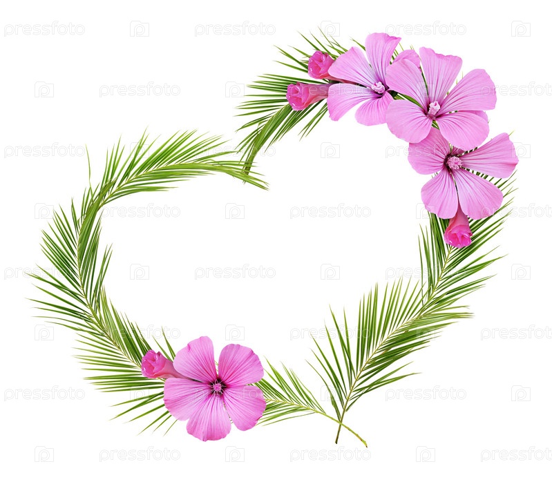 Пальмовые листья и розовые цветы