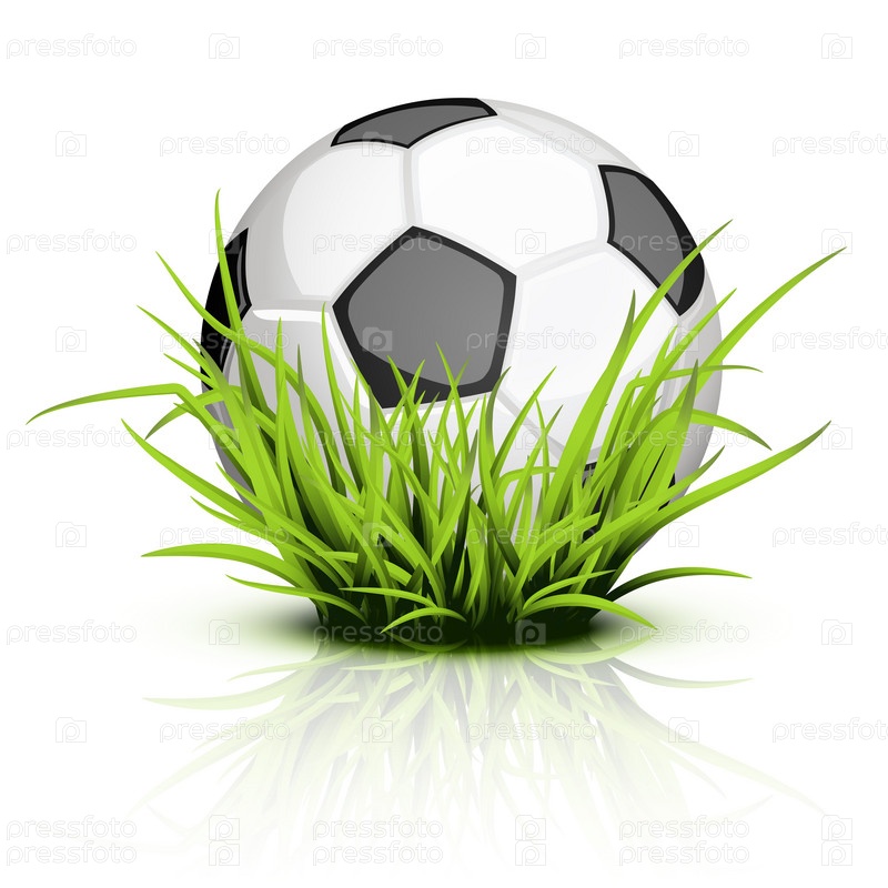 Футбольный мяч на траве с отражением