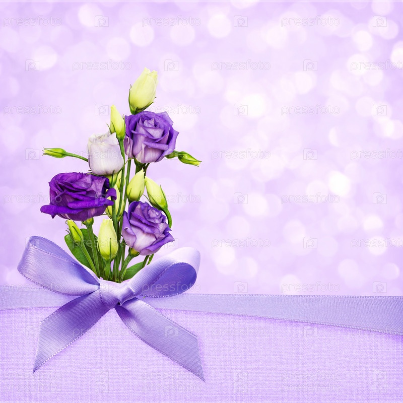 Сиреневый фон с шелковым бантом и цветами