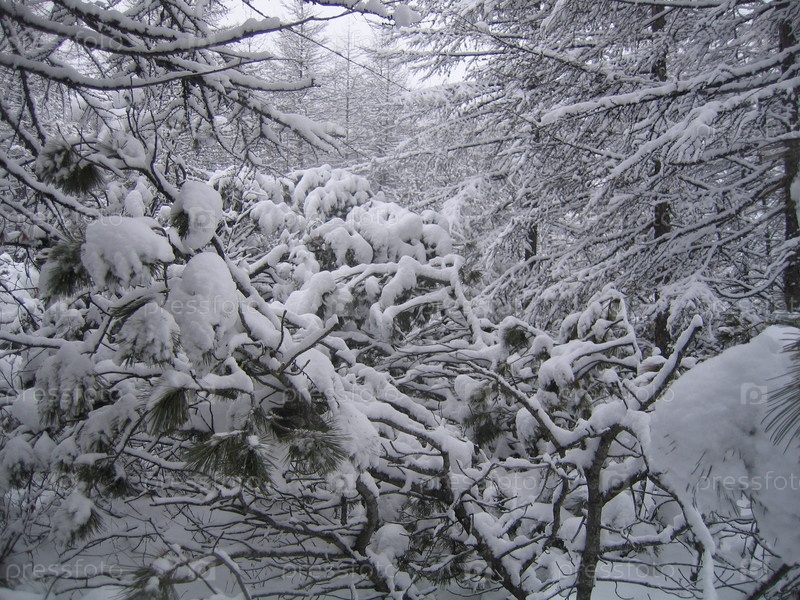 Заснеженные ветки в лесу, Магадан