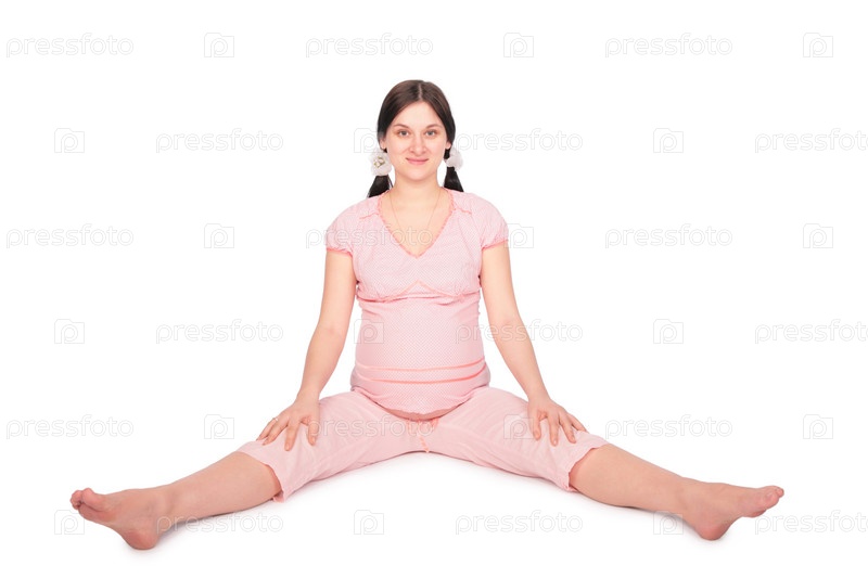 Беременная женщина занимается фитнесом на полу
