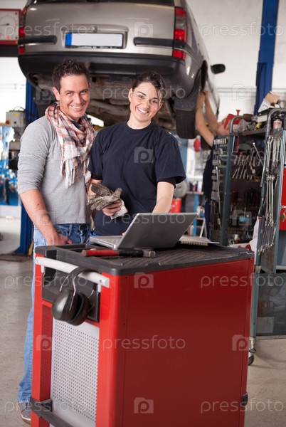 Женщина-механик с клиентом