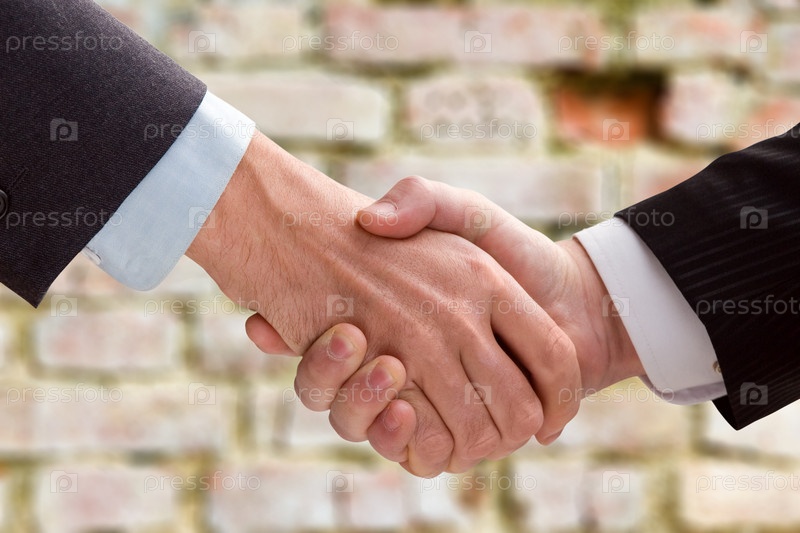 Рукопожатие на фоне кирпичной стены