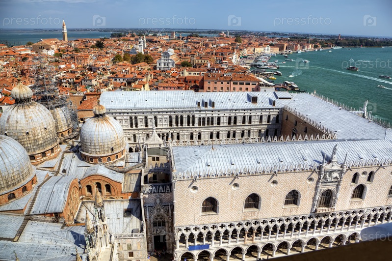 Венеция. Вид на крыши города и дворец Дожей с колокольни базилики Сан-Марко. Италия