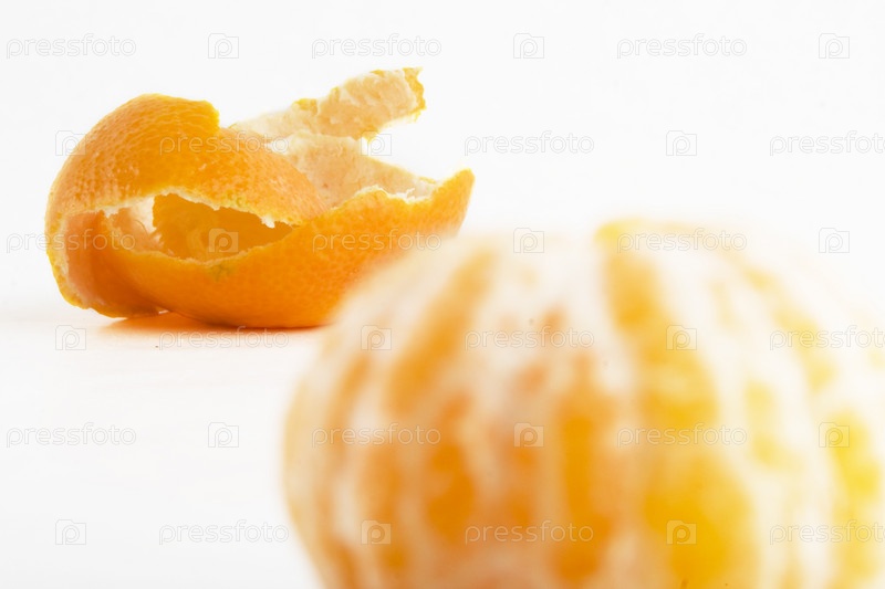 Апельсин с кожурой на белом фоне