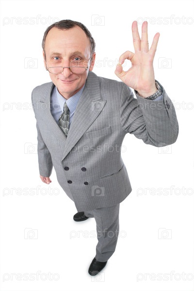 Человек в сером костюме показывает, что все ОК