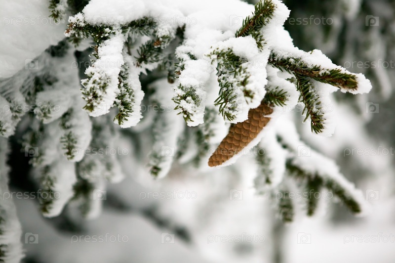Еловая ветка в снегу
