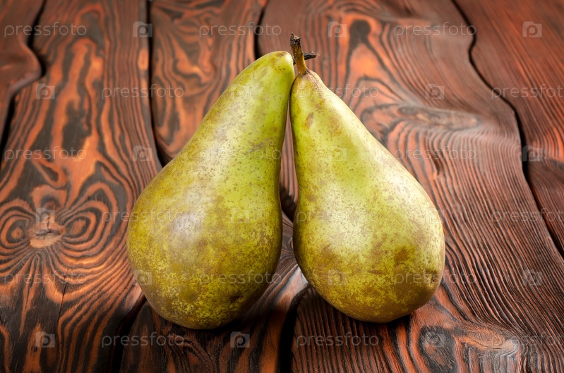 Две груши на деревянной поверхности