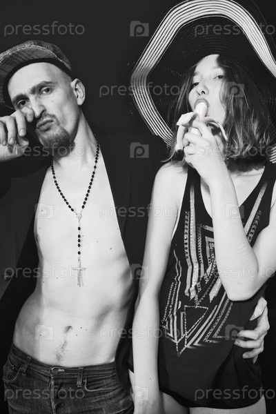 Молодая стильная пара на черном фоне
