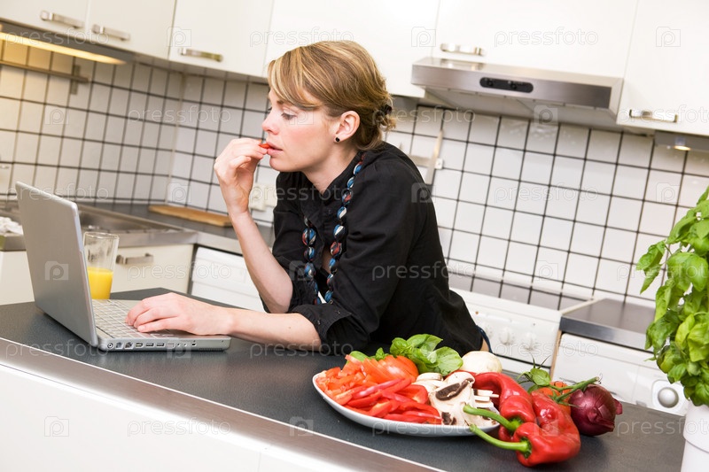 Женщина с ноутбуком на кухне