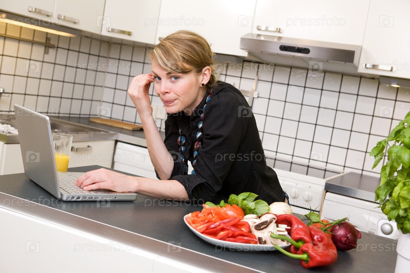 Женщина с ноутбуком на кухне